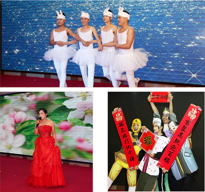 年會現(xiàn)場,其樂融融,員工們各展所長,紛紛呈現(xiàn)出精彩的表演,詼諧勵志的四小天鵝、惟妙惟肖的大咖模仿秀、溫暖深情的獨唱、美妙動聽的吉他彈奏、動感十足的舞蹈、祝福滿滿的手語舞、幽默搞笑的三句半、創(chuàng)意改編合唱等,通過節(jié)目紛紛表達出對同事、公司的樸實情感及對美好未來的祝福。